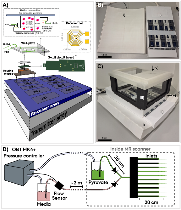 Hyperpolarized (HP) carbon-13 labeled compounds have significantly advanced metabolic research, enabling real-time, non-invasive tracking of metabolic processes in vivo and ex vivo. These techniques are particularly valuable for studying diseases characterized by altered metabolism, such as cancer, but their high cost and technical complexity limit broader adoption. A critical need exists for cost-effective, high-throughput methods to maximize the utility of these tracers in translational research. In this study, we present a 30-channel microcoil receiver array that enables simultaneous metabolic flux measurements across 30 samples using a single HP dissolution. This system represents a significant increase in throughput compared to previous setups. Using a single dissolution of HP [1-13C] pyruvate, we demonstrate the system's ability to detect significant changes in pyruvate-to- lactate conversion in acute myeloblastic leukemia ML-1 cells treated with 2-deoxy-d-glucose. This was achieved with high statistical power (p < 0.001), despite inter-plate variability in perfusion rates of HP pyruvate. This work establishes a new benchmark for high-throughput HP technologies, achieving high statistical power per pyruvate dissolution. By addressing key limitations and optimizing current designs, this technology holds potential in translational metabolic research, particularly in resource-intensive applications such as drug screening and disease modeling. Furthermore, the modular design of the microcoil array is adaptable for a variety of sample types, including tissues, organoids, and patient-derived models. This versatility positions the system as a promising tool for translational research in metabolic diseases, extending beyond oncology to conditions such as diabetes, neurodegeneration, and cardiovascular disorders.