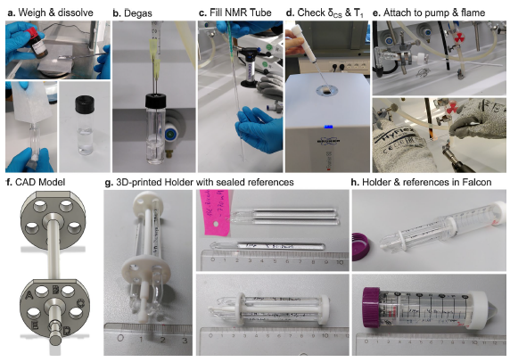 Materials and methods The phantom was built from readily available labware (50 mL centrifuge tubes, NMR glass vials) and 3D-printed holders, designed to ensure sufficient coil loading and excellent B0 homogeneity. 13C-labeled reference solutions were stabilized by argon degassing, sodium azide addition, and airtight flame sealing, with optional gadolinium doping to tune T1/T2 relaxation. Performance was tested at 1.4 T, 3 T, and 11.7 T using 1H MRI, 13C spectroscopy, and 13C MRSI.